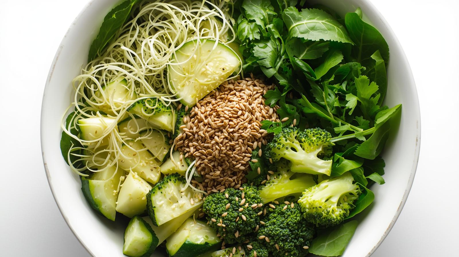 Add on meal topper made with spinach, zucchini, alfalfa or bean sprouts, parsley, broccoli, flaxseed oil.